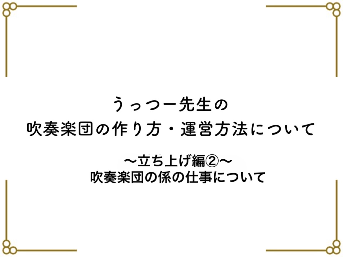 前回の記事:うっつー先生の吹奏楽団の作り方・運営方法〜立ち上げ編①〜楽団のコンセプトを決めろ!〜