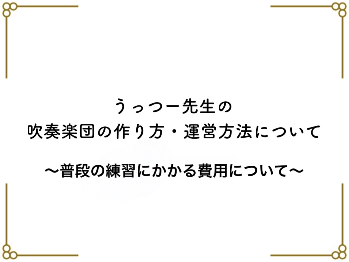 うっつー先生の吹奏楽団の作り方・運営方法〜立〜普段の練習運営にかかる費用について〜
