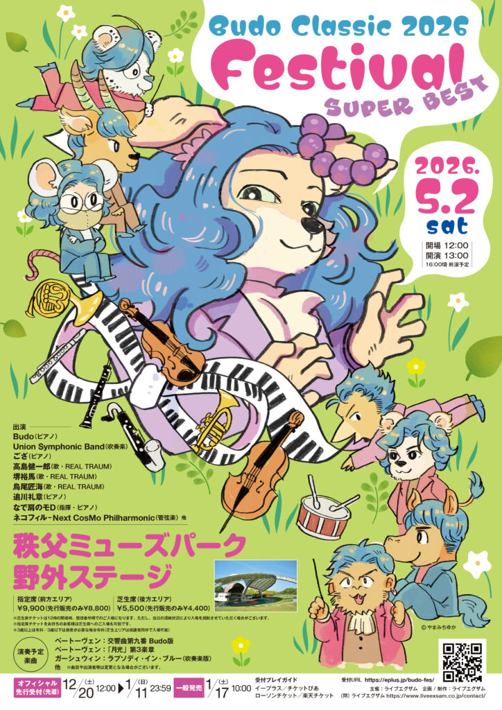本日は12月4日にピアノ奏者のBudoさんのチャンネルから告知があったように、私が指揮運営している横浜市の一般の社会人吹奏楽団Union Symphonic Bandが来年の2026年5月2日(土)に秩父ミューズパークにて行われるBudo Classic Festival 2026〜SUPER BEST〜に出演させていただくことになりました!