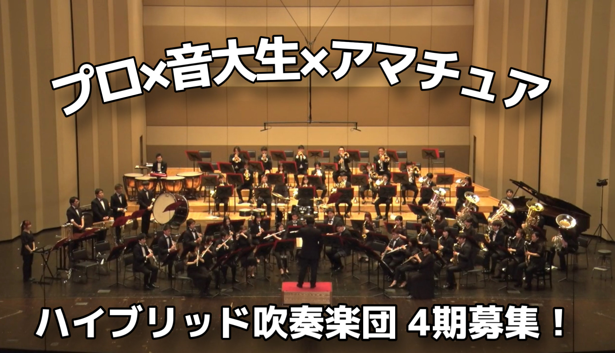 ハイブリッド吹奏楽団とはアマチュアと音大生、フリーランスのプロの方の垣根を超えた期間限定の吹奏楽団です。活動の目的としては交流や繋がることをメインとしたバンドで、そこでのご縁をもとにお仕事を振ったり、レッスンを受けるようになったり、アンサンブルの演奏会を他で開催してみたりと参加者の中には多様に色々と繋がれたようです。