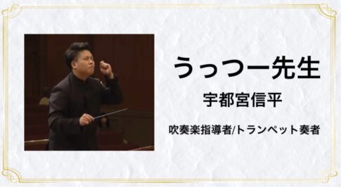 プロフィール 宇都宮信平(うっつー先生)のプロフィール 2026.02.071994年福岡県中間市生まれ。 吹奏楽指導者・吹奏楽イベンター・トランペット奏者として活動中。 中学の頃に吹奏楽部に入りトランペットを始め青春を吹奏楽に捧げる日々を送る。中学としては8年ぶり、高校としては10年以上ぶり全...